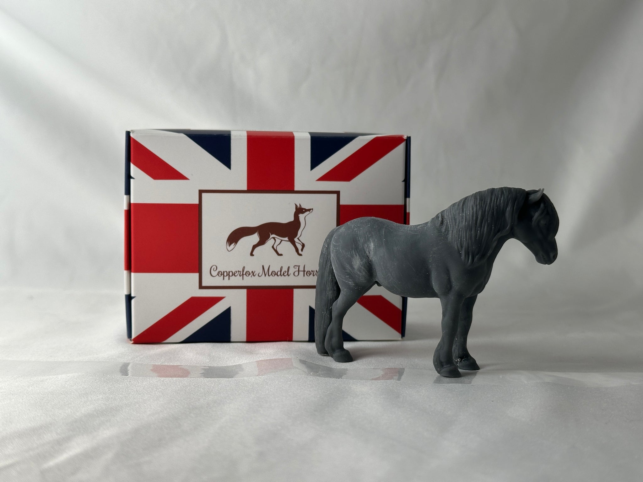 Here is the cute, chubby Highland pony printed in solid dark grey Tough 2000 resin from Formlabs. He is a Coppercub scale, needs some prep work to paint. Comes in a foam lined box.
